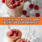 A refreshing and nutritious Healthy Chocolate Shake made with raw cacao powder, ripe bananas, and natural sweeteners, blended with almond milk and ice for a creamy, frothy treat perfect for a quick breakfast or snack.