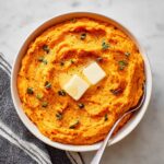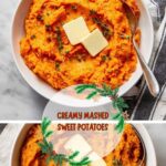- Serve and Garnish: Spoon the mashed sweet potatoes into a serving bowl. Garnish with your choice of fresh thyme, a pat of butter, chopped chives, or a sprinkle of orange zest to add color and extra flavor.