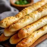 These homemade breadsticks are soft on the inside with a golden, crispy exterior, perfect as a snack or a side for your favorite meals. Made with simple pantry staples including all-purpose flour, yeast, and olive oil, these breadsticks come together with a delightful garlic powder optional twist, and finished with a buttery glaze for extra flavor.