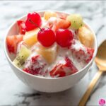This fruit salad is meant to be served chilled, so reheating isn’t necessary. If you prefer it slightly warmer, simply let it sit at room temperature for a few minutes, but avoid heating as it breaks down the yogurt and fruit.