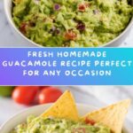 This easy and fresh homemade guacamole recipe combines ripe avocados with zesty lime juice, tomatoes, jalapeño, onions, garlic, and cilantro for a creamy and flavorful dip perfect for any occasion.