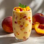 - Garnish and Enjoy: Garnish with a peach slice and a sprinkle of shredded coconut, then serve immediately for best freshness and flavor.