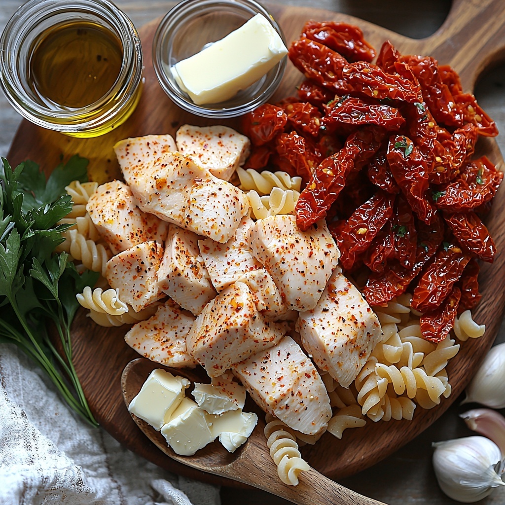 - 1/2 cup Sun-Dried Tomatoes: Gives a pleasantly tangy sweetness that complements the creamy sauce.