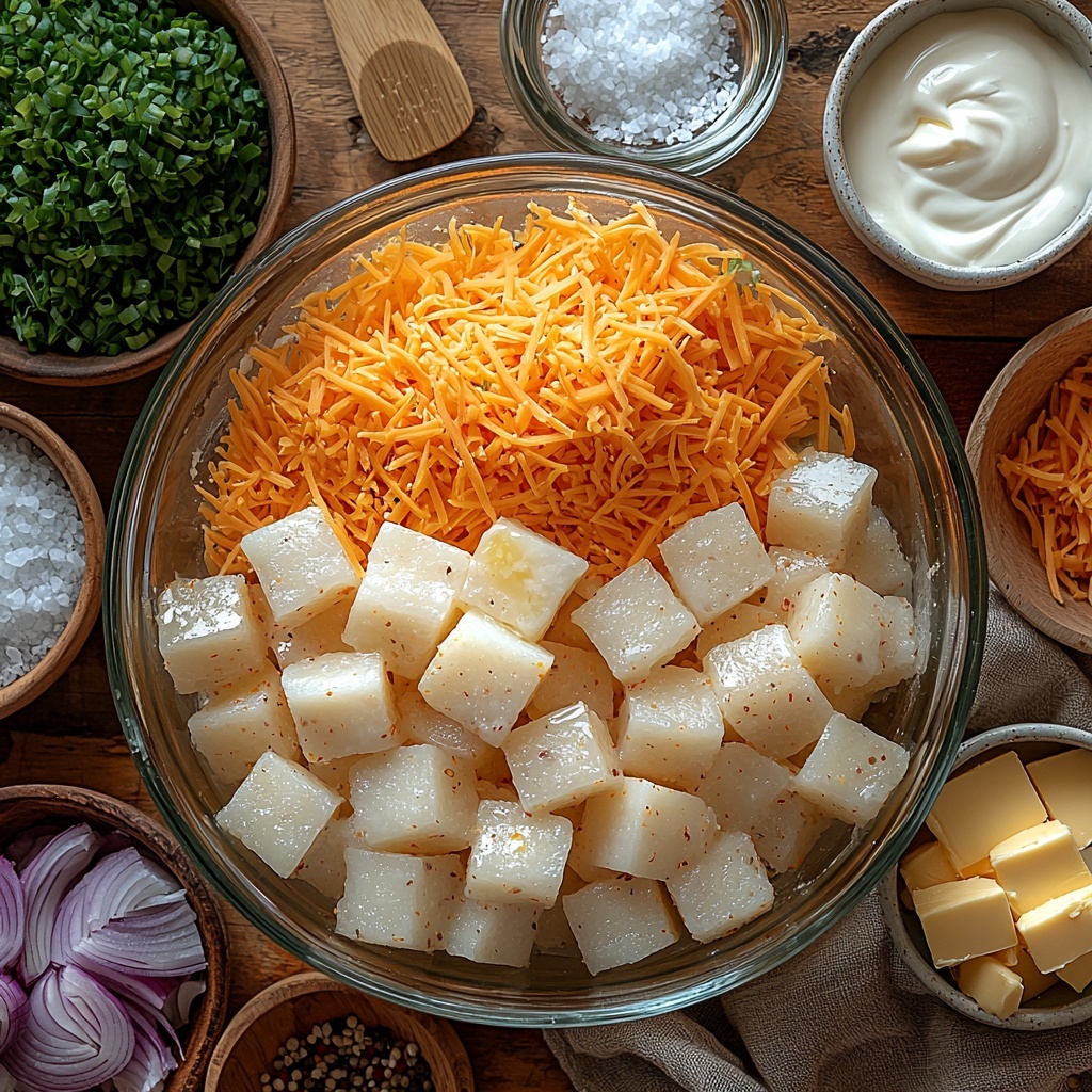 - 2 cups Shredded Cheddar Cheese: That gooey, melty magic that makes these potatoes truly irresistible—opt for lower-fat cheese if desired.