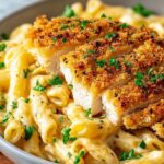 In a small pan, melt the remaining butter and add the breadcrumbs. Toast them until they turn a gorgeous golden brown and get wonderfully crispy. This final touch adds an amazing crunch that contrasts beautifully with the creamy pasta and tender chicken, staying true to the classic dish’s delightful texture play.