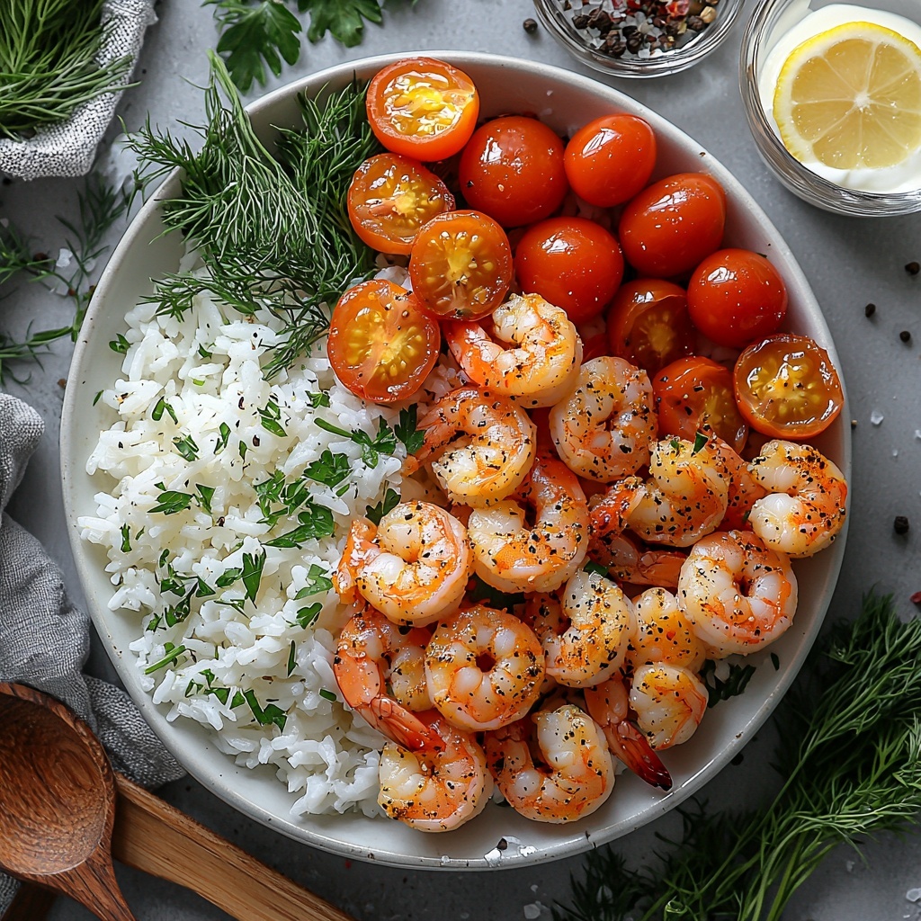 This Juicy Garlic Butter Shrimp Bowl with Creamy Herb Rice Delight combines succulent shrimp sautéed in fragrant garlic butter with a creamy, herb-infused rice base. Enhanced with fresh parsley, dill, and a splash of lemon juice, this quick and flavorful dish offers a perfect balance of richness and freshness, ideal for a satisfying weeknight meal.