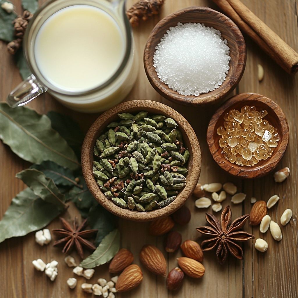 - 2 crushed cardamom pods: Imparts an exotic, floral note to enrich the tea’s aroma.