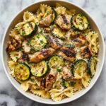 This Lemon Chicken Pasta recipe is a bright and flavorful dish combining tender chicken breasts, fresh lemon juice, sautéed zucchini and yellow squash, and mini farfalle pasta tossed in a buttery, garlicky sauce with parmesan cheese. Ready in just 25 minutes, it’s a perfect weeknight meal that balances fresh vegetables, tangy lemon, and comforting pasta for a satisfying and delicious dinner.