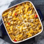 This Lightened-Up Cheeseburger Pasta Bake takes all the delicious flavors of a classic cheeseburger and combines them with wholesome whole wheat pasta for a healthy, comforting, and satisfying meal. Featuring lean ground beef or turkey, tangy ketchup, mustard, and pickle relish, and a creamy touch of nonfat Greek yogurt, this recipe is a lightened twist on a cheesy casserole favorite. It’s easy to prepare, perfect for weeknight dinners, and can be topped with fresh burger fixings for added crunch and flavor.