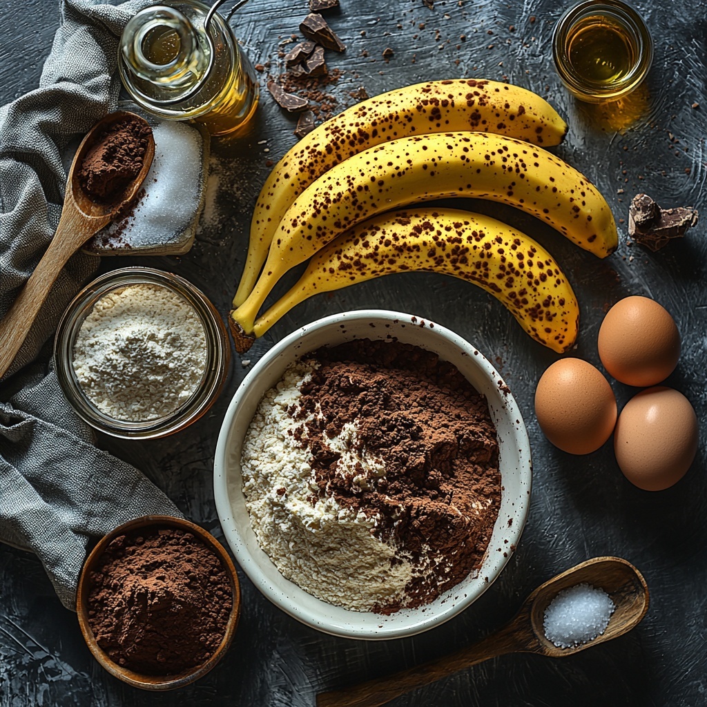 This recipe calls for straightforward, pantry-friendly ingredients that each play an important role in creating the tender crumb and striking marbled effect. From ripe bananas which bring natural moisture and sweetness, to cocoa powder that adds a deep chocolate richness, every item elevates the final loaf.
