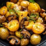 This dish pairs beautifully with simple protein options like roasted chicken, grilled steak, or pan-seared fish. The earthy mushrooms and crispy potatoes complement these mains perfectly without overpowering them.