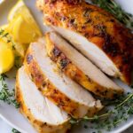 - Butter and Herb Mixture: In a small bowl, combine 2 tablespoons of softened butter with ½ teaspoon salt and finely chopped thyme. Gently loosen and separate the skin from the thickest part of the breast without detaching the edges. Rub the butter and thyme mixture evenly under the skin to infuse flavor and retain moisture.