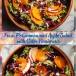 A refreshing Persimmon and Apple Salad featuring a vibrant cider vinaigrette, mixed greens, crunchy nuts, and optional creamy feta. This salad combines sweet, tart, and savory flavors with a delightful crunch from candied walnuts and pomegranate seeds, perfect as a light lunch or a colorful starter.