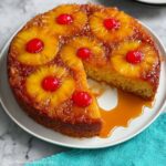 This classic Pineapple Upside Down Cake features caramelized pineapple rings and maraschino cherries atop a moist, buttery cake. Perfectly baked to golden perfection, it combines sweet, tangy fruit with a tender crumb for a delightful dessert that’s simple to make and sure to impress.