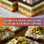 This Pistachio Cheesecake features a creamy, nutty filling made with smooth cream cheese and rich pistachio paste, set atop a buttery graham cracker crust. It’s baked to perfection with a delicate balance of sweet and nutty flavors, topped with chopped roasted pistachios and optional whipped cream, making a perfect dessert for any occasion.