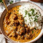 Pumpkin Butter Chicken is a comforting and flavorful fall recipe featuring tender chicken thighs marinated in spices and yogurt, then simmered in a rich, creamy pumpkin butter sauce with warm aromatic spices. Perfectly paired with basmati rice or naan, this dish beautifully combines savory and subtly sweet flavors for a satisfying meal.
