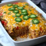 This recipe shines because of its simple yet essential ingredients, each chosen to build layers of flavor, color, and texture. From the savory ground meat to the fresh bell peppers and that luscious queso dip, every component plays a starring role in making the casserole unforgettable.