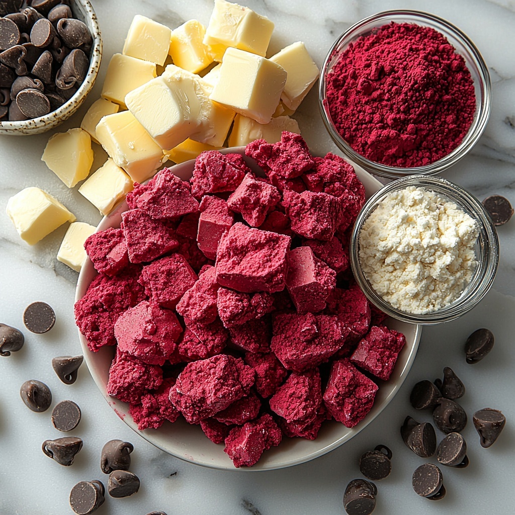 Getting ready to make this scrumptious Red Velvet Edible Cookie Dough Recipe? The ingredients are straightforward yet essential. Each component plays a distinct role in flavor, color, or texture, coming together to create a dough that feels indulgent but balanced.
