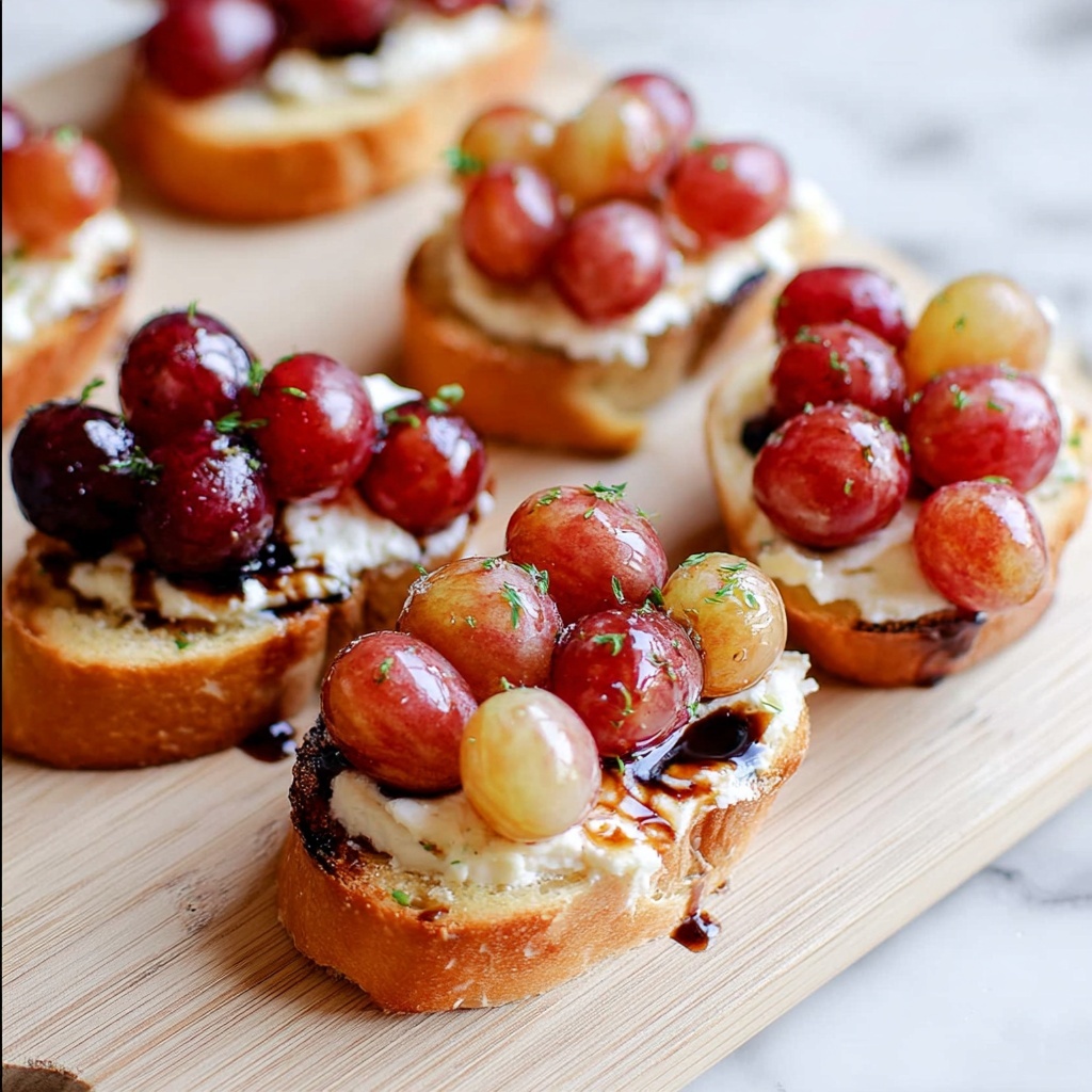Finally, drizzle each crostini with the reduced balsamic vinegar. This luscious, tangy-sweet syrup cuts right through the richness of the ricotta and complements the caramelized grapes, making every bite an explosion of flavor. Serve immediately and watch these beauties disappear first at any gathering.
