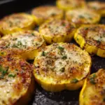 Spread the coated squash slices out in a single layer on your prepared baking sheet. It’s important they don’t overlap so they can roast evenly and get that lovely caramelization. Pop the tray into the oven and roast for 20 to 25 minutes. About halfway through cooking, flip the slices so both sides brown nicely.