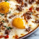 - Add Sausage and Cheeses: Sprinkle the cooked breakfast sausage evenly atop the eggs, then cover with shredded mozzarella, cheddar, and the optional Parmesan cheese.