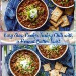 A hearty and flavorful turkey chili featuring a unique twist with peanut butter, slow-cooked to perfection for a rich and creamy texture. This comforting dish combines ground turkey, beans, vegetables, and a blend of spices for a satisfying meal perfect for chilly days.