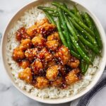 Divide the cooked rice between bowls, then generously top with the glossy sesame chicken and vibrant green beans. Finish with a sprinkle of sesame seeds and sliced green onions for that irresistible crunch and color. Serve hot, savoring every warm, flavor-packed mouthful of this comforting creation.