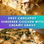 - Combine Shredded Chicken and Gravy: Return the shredded chicken back to the crockpot and stir well to coat the chicken evenly with the gravy.