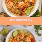 A vibrant and flavorful Shrimp Pad Thai recipe featuring a savory sauce made with fish sauce, soy sauce, rice vinegar, brown sugar, peanut butter, and sriracha. Served with tender rice noodles, sautéed shrimp, fresh vegetables, scrambled eggs, bean sprouts, and garnished with lime, cilantro, and peanuts for an authentic Thai dining experience at home.