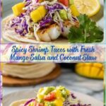 These Shrimp Tacos with Coconut Coleslaw and Mango Salsa deliver vibrant, fresh flavors perfect for a quick and satisfying meal. Tender, spiced shrimp grilled to perfection are paired with a creamy, tropical coconut coleslaw and a sweet, tangy mango salsa, all wrapped in warm corn tortillas. This recipe balances spicy, sweet, and savory notes making it an irresistible dish for taco lovers.
