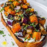 To make it vegan, substitute goat cheese with a plant-based spreadable cheese, and ensure your bread and oil are vegan-friendly. The roasted squash remains a naturally perfect vegan ingredient.