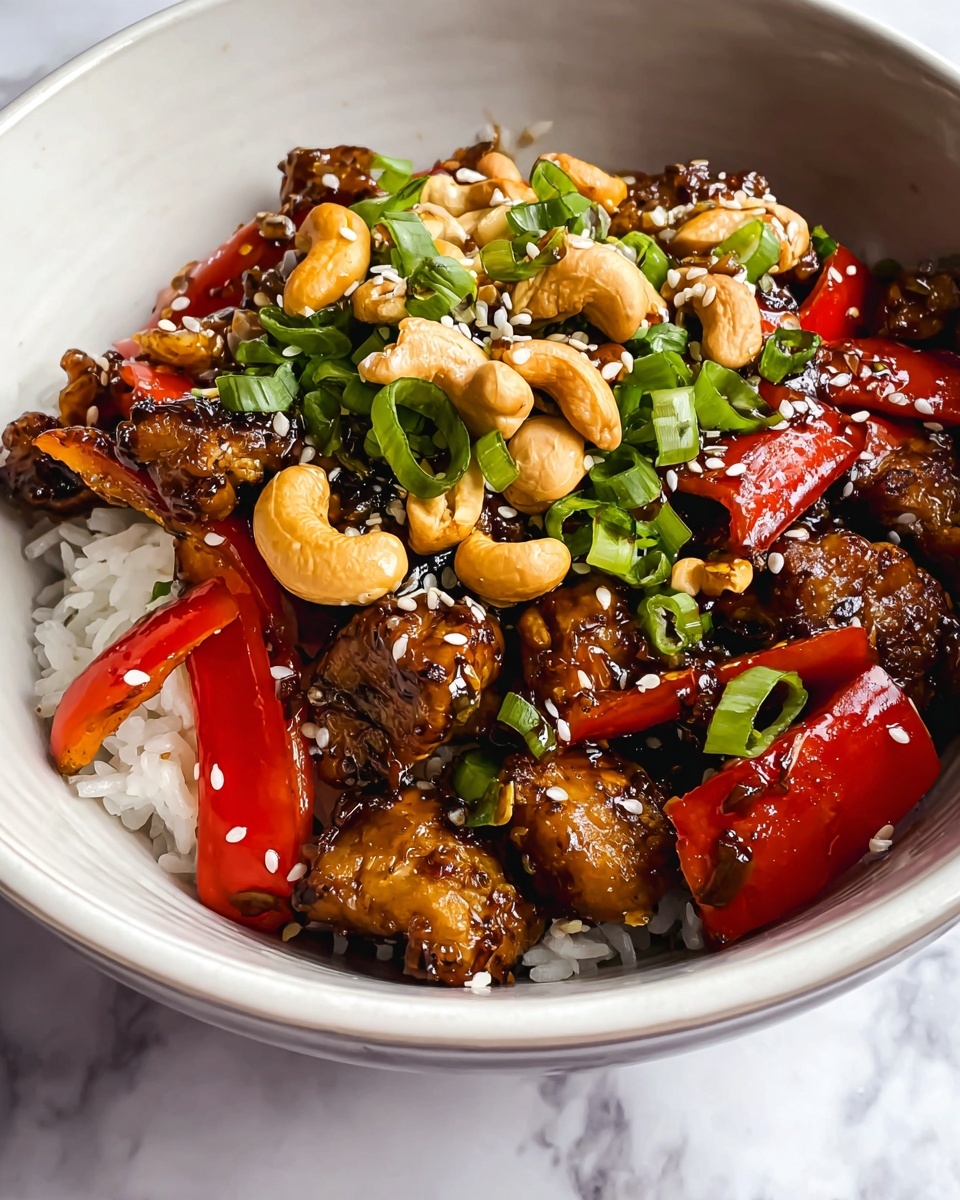 A vibrant and healthy Simple Cashew Chicken Stir Fry featuring tender chicken breast, crunchy cashews, and fresh vegetables tossed in a flavorful soy and sesame sauce. Perfect for a quick and nutritious weeknight dinner, this recipe balances protein and crisp veggies with rich, savory flavors.