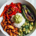 Start with a generous layer of rice or quinoa at the bottom of your bowl. Top with the sizzling chicken and pepper mixture, then finish it off with a squeeze of fresh lime and a handful of chopped cilantro for that extra burst of freshness.
