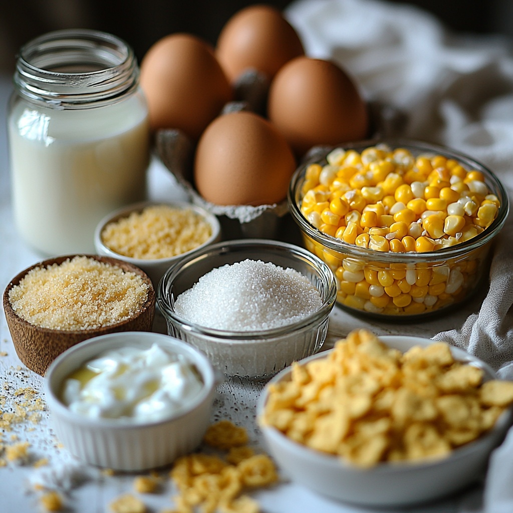 Gathering a handful of straightforward, pantry-friendly ingredients makes this dish both accessible and irresistibly tasty. Each component contributes something special—from the eggs that set the custard, to the corn that brings fresh sweetness, and a hint of spice to round out the flavors.
