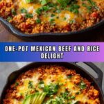 This Skillet Mexican Beef and Rice recipe is a flavorful and hearty one-pan dinner perfect for busy weeknights. Ground beef is cooked with aromatic onions and garlic, then simmered with rice, black beans, corn, and a blend of Mexican spices until tender. Topped with melted cheddar cheese and garnished with fresh cilantro and lime wedges, this dish delivers a satisfying combination of savory, spicy, and zesty flavors all in one skillet.