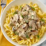 For a cozy dinner party or family gathering, make a beautiful layered plate by twirling the egg noodles into nests and ladling the stroganoff mixture on top. For something a bit different, try serving the stroganoff stuffed into baked bell peppers or atop creamy polenta to mix textures and flavors for a new twist everyone will love.