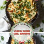 To add some festive fun, serve your Smothered Green Chili Burritos family-style right from the baking dish so everyone can help themselves. You can also plate individual burritos topped with extra cheese and chopped cilantro for a beautiful presentation at a casual dinner party.