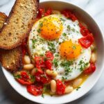 A hearty and flavorful Spanish-inspired dish featuring tender cannellini beans simmered in a smoky tomato sauce, topped with perfectly cooked eggs. This simple skillet recipe combines aromatic spices like smoked paprika, cumin, and chili powder, making it a satisfying meal perfect for breakfast, brunch, or dinner. Served with crusty bread, it’s easy to prepare and packed with comforting Mediterranean flavors.