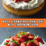 This Strawberry Tahini Cake is a delightful blend of nutty tahini and fresh strawberries, creating a moist, flavorful dessert with a hint of cardamom spice. Topped with whipped cream and more strawberries, this cake is perfect for any occasion that calls for a unique and refreshing twist on a classic strawberry cake.