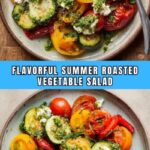 A vibrant and healthy Summer Roasted Vegetable Salad featuring tender roasted zucchini, yellow squash, bell peppers, red onion, and cherry tomatoes, served atop fresh mixed greens with a tangy balsamic glaze and optional creamy feta or goat cheese. Perfect for a light meal or a flavorful side dish, this Mediterranean-inspired salad can be enjoyed warm, at room temperature, or chilled.