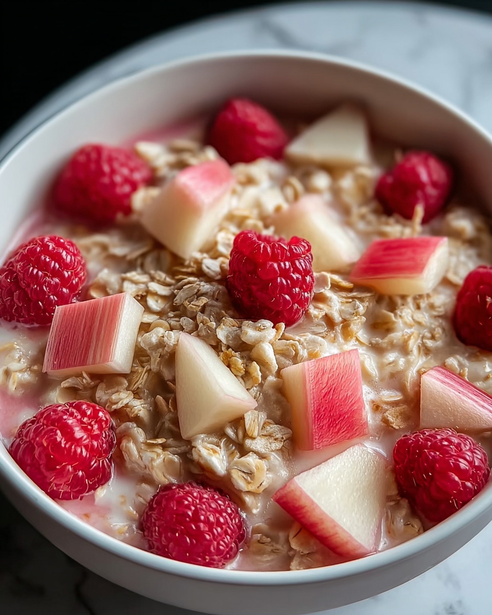 Getting the ingredients together for this recipe is wonderfully straightforward. Each element plays a vital role, whether it’s the creamy rolled oats providing a rich base, the rhubarb adding a pop of color and tartness, or the maple syrup infusing natural sweetness that brings everything together harmoniously.
