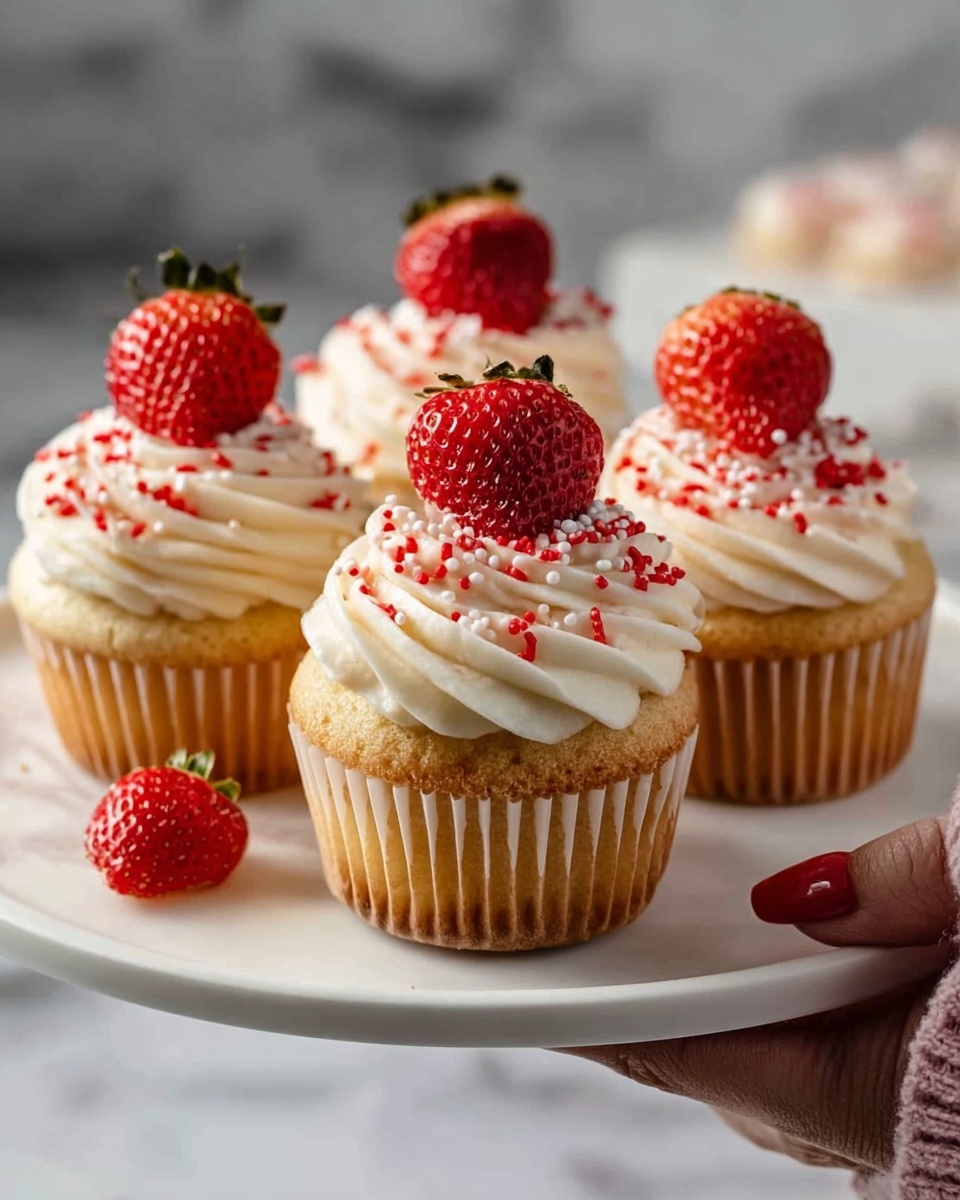 To complete the look and flavor, garnish with fresh strawberry slices or small whole berries to highlight the fruitiness. White chocolate curls or a dusting of powdered sugar can add that elegant finish that makes these cupcakes feel extra special.