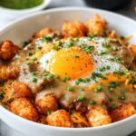If you’re searching for a cozy, hearty breakfast that feels like a warm hug first thing in the morning, this Tater Tot Breakfast Bowl Recipe is exactly what you need. Crispy golden tater tots form the perfect base for fluffy scrambled eggs, savory sausage or bacon, melty cheddar cheese, and fresh green onions, all coming together in one irresistible bowl. It’s easy to whip up on a busy morning but tastes special enough to share on a weekend brunch. Each bite combines comforting textures and flavors that will make you fall in love with breakfast all over again.