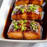 This Teriyaki Glazed Salmon recipe features tender salmon fillets baked to perfection and coated with a rich, sweet, and savory homemade teriyaki sauce. With a balance of soy sauce, brown sugar, garlic, ginger, and a touch of spice from Sriracha, this dish is both flavorful and easy to prepare. Topped with toasted sesame seeds and fresh green onions, it’s a simple yet elegant meal perfect for a healthy weeknight dinner or special occasion.