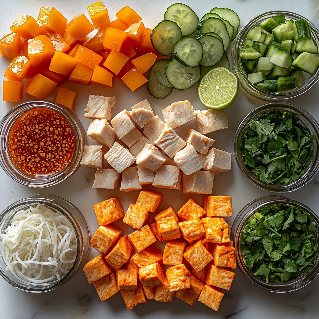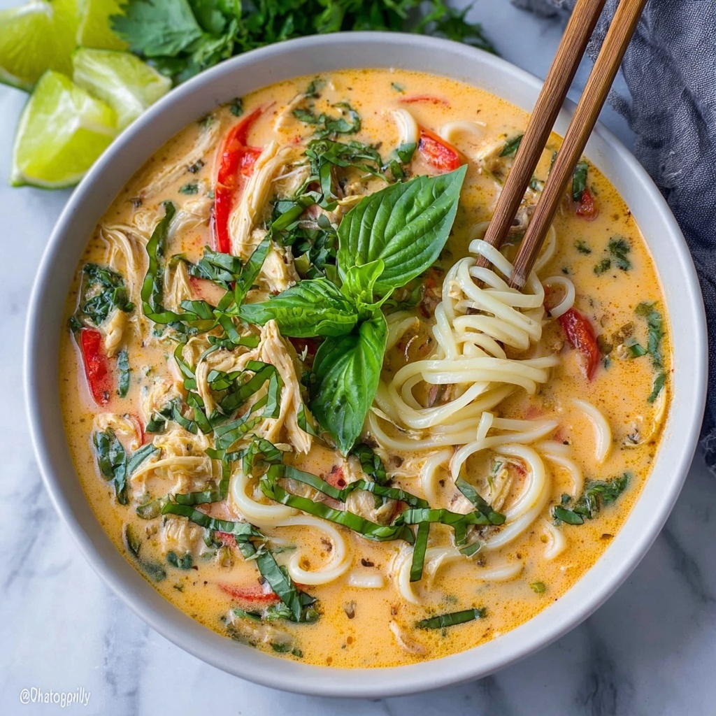 To elevate the presentation and flavor, scatter vibrant green onions, chopped cilantro, and thin slices of Thai basil on top. These garnishes add freshness, aromatic complexity, and a burst of color that invites you to dive in. Don’t forget a few extra lime wedges on the side for anyone who loves that zingy pop of citrus with every bite.