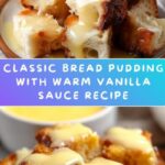 This classic bread pudding recipe combines day-old bread with a rich custard of milk, cream, eggs, and warm spices, baked until golden and served with a luscious homemade vanilla sauce. Perfect as a comforting dessert for any occasion, it offers a delightful balance of creamy texture and sweet, spiced flavors.