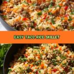 This quick and easy Taco Rice recipe combines seasoned ground beef with fluffy rice, salsa, and melted cheddar cheese for a flavorful and comforting meal perfect for busy weeknights.