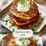 Traditional Irish Potato Boxty is a comforting and hearty potato pancake made with a mixture of grated and mashed potatoes combined with flour, milk, and egg, then pan-fried to golden perfection. This recipe delivers crispy edges with a soft, tender middle, seasoned simply with salt, pepper, and fresh chives, perfect for a classic Irish breakfast or a savory side dish.
