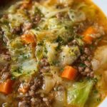 A comforting and hearty Unstuffed Cabbage Roll Soup that captures all the flavors of traditional stuffed cabbage rolls without the hassle of rolling. This easy-to-make soup combines ground beef and pork with cabbage, rice, and a savory tomato broth, making it a perfect meal for chilly days.