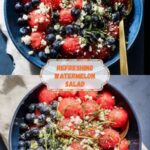 For a stunning presentation, serve the salad in hollowed-out watermelon halves or individual small bowls made from melon rind. You could also layer it in clear glasses as a colorful fruit parfait, showcasing the vibrant layers of watermelon, blueberries, and feta crumbles.
